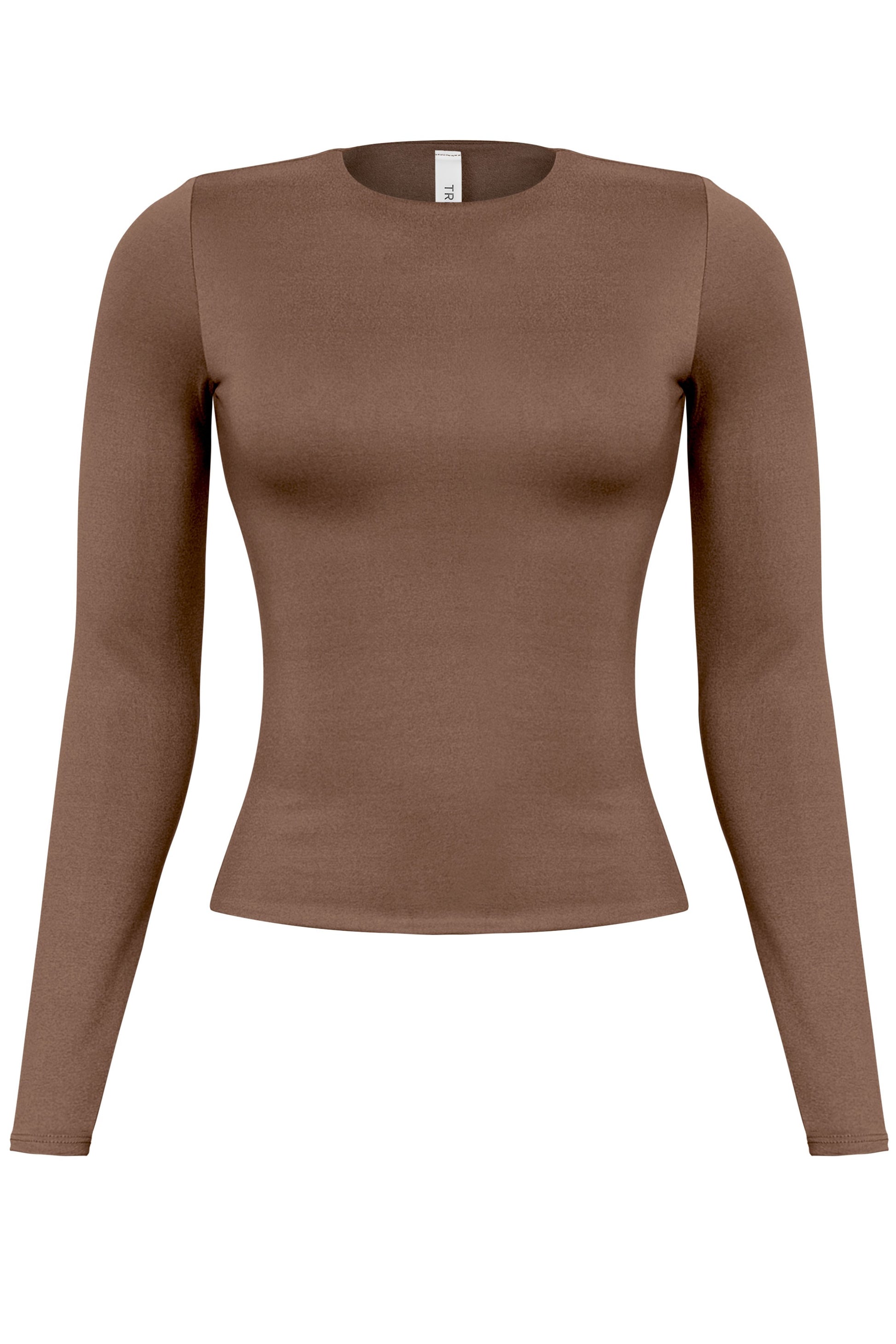 This round neck long sleeve is crafted from a buttery soft double-layered composition, providing a comfortable stretch that's never see-through. 96% Polyester and 4% Spandex creates an optimal fit and feel.