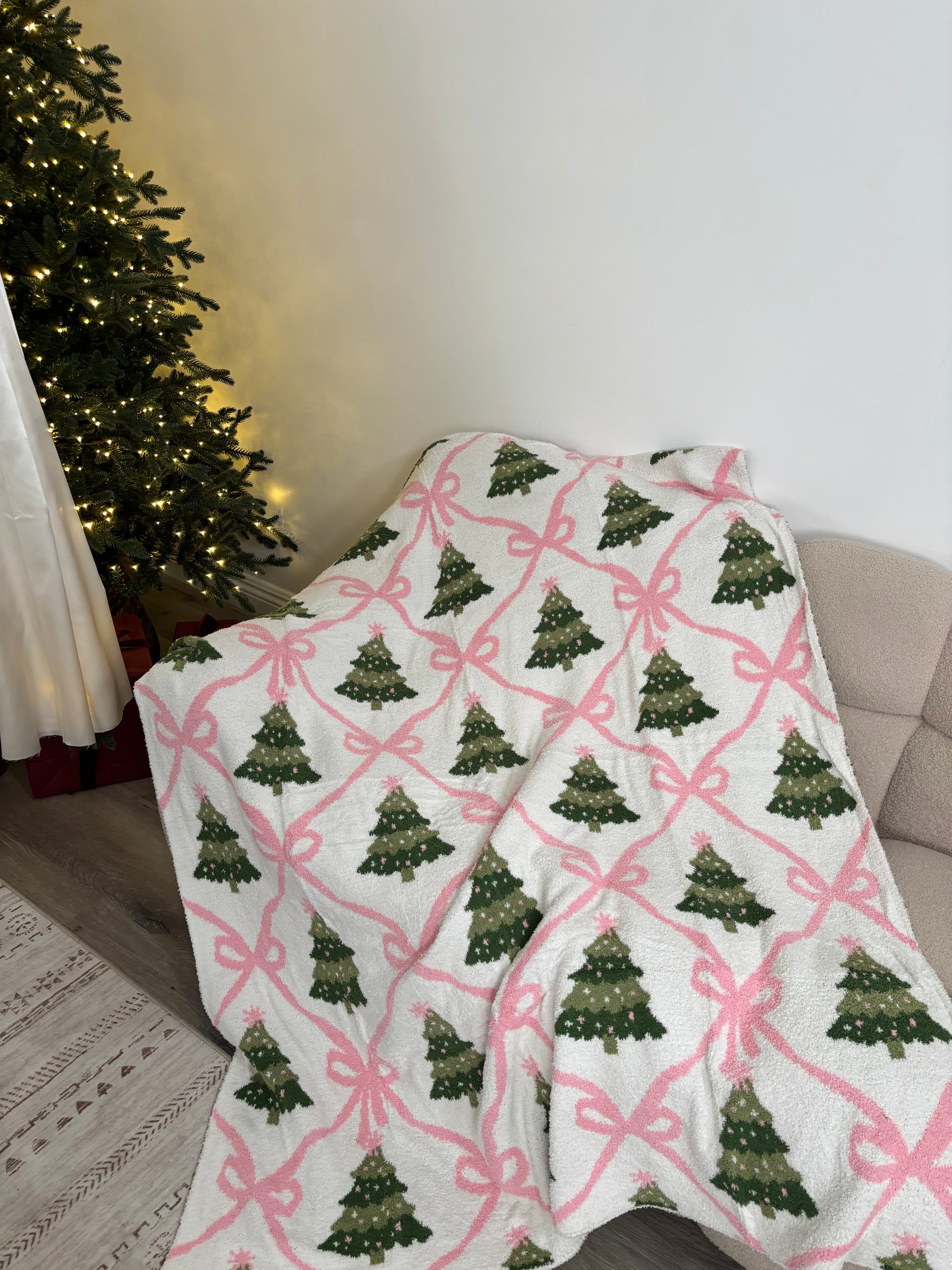 Wrap yourself in a soft hush of holiday warmth with this beautifully woven Christmas throw. Its plush texture feels like sinking into a quiet winter evening, while the delicate pink ribbon motif dances between classic evergreen trees for a fresh, feminine take on festive décor. Drape it over your sofa, layer it at the foot of your bed, or curl up with it during movie nights by the tree. It brings a gentle glow of seasonal charm to any space and adds that touch of cozy elegance your home has been craving.