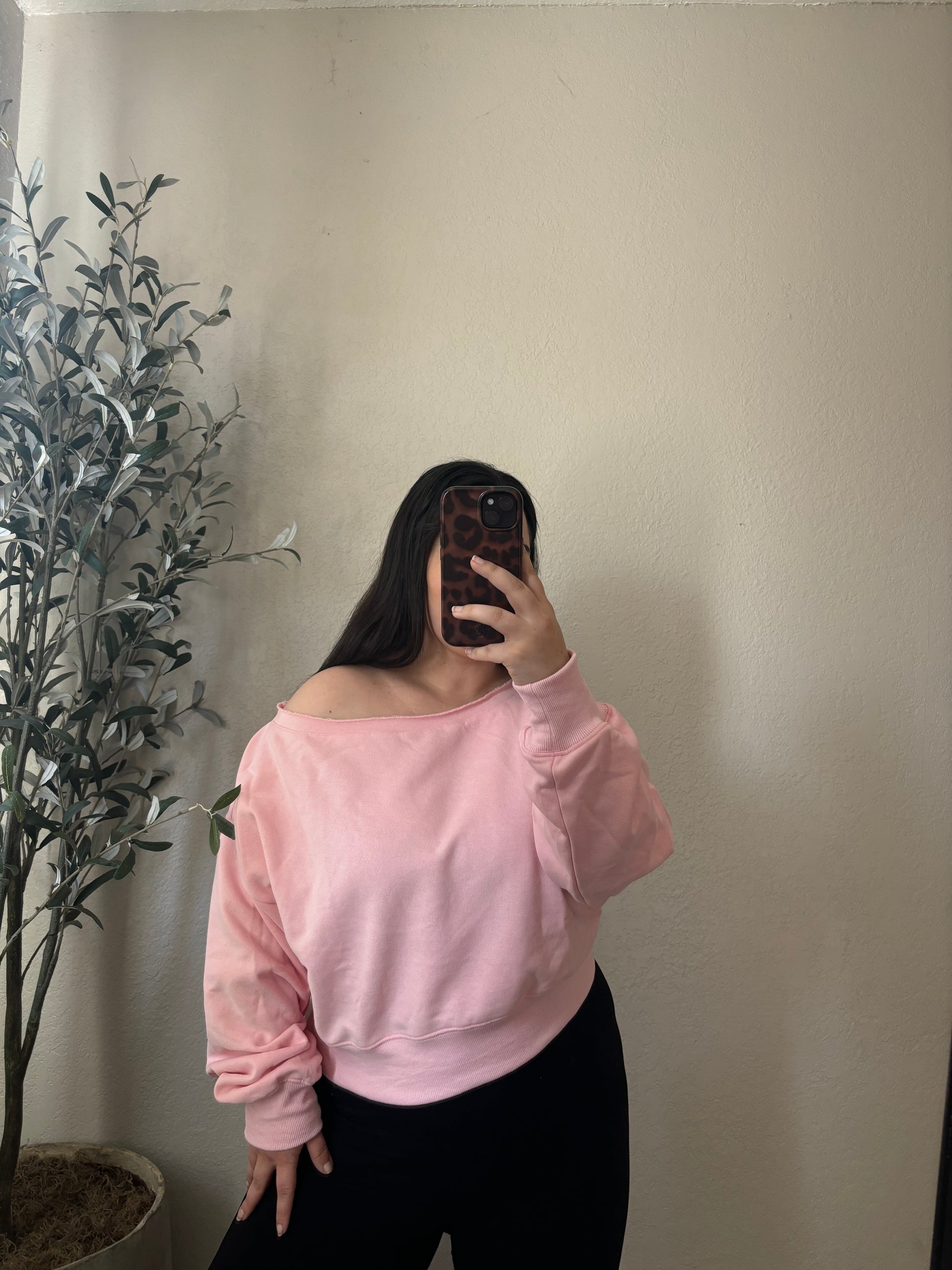 Love Struck Off Shoulder Sweater- Pink